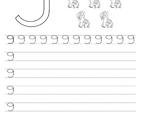 9 RAKAMI ÇİZGİ ÇALIŞMASI, OKUL ÖNCESİ OKUMA YAZMAYA HAZIRLIK, MATEMATİK ÇALIŞMA ÖDEV SAYFASI
